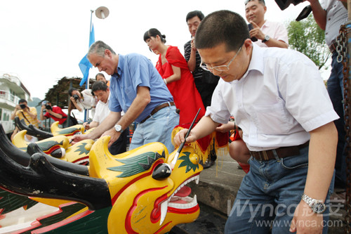 瀏覽量:6491 6月9日下午,新安集團(tuán)兩年一屆的新安龍舟賽在新安江上激情上演。本屆龍舟賽共有農(nóng)化事業(yè)部、農(nóng)藥廠、化工二廠、有機(jī)硅事業(yè)部、有機(jī)硅廠、硅酮密封膠廠、熱電廠、集團(tuán)機(jī)關(guān)聯(lián)隊(duì)、采購中心、新安物流、新安包裝、新安邁圖、開化合成、開化元通、鎮(zhèn)江江南、泰興興安等16支代表隊(duì)參賽。經(jīng)過激烈角逐,熱電廠代表隊(duì)獲得了一等獎;開化元通和新安物流代表隊(duì)獲得了二等獎;有機(jī)硅廠、開化合成、集團(tuán)機(jī)關(guān)三支代表隊(duì)獲得了三等獎。圖為在龍舟賽前的開幕式上,集團(tuán)領(lǐng)導(dǎo)為龍舟點(diǎn)睛。