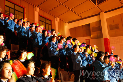 瀏覽量:4761 4月25日晚,由80名新安化工員工組成的合唱團(tuán),身穿新安藍(lán)工作服,在體育場(chǎng)內(nèi)參加建德市萬名職工唱紅歌的活動(dòng),放聲高唱《東方紅》、《山丹丹花開紅艷艷》和《歌唱祖國》等紅色歌曲,以此來慶祝“五一”勞動(dòng)節(jié)和即將到來的建黨90周年大慶。在活動(dòng)中,公司員工何亮成為晚會(huì)主持人之一,與其他五名主持人一起為全市勞動(dòng)模范和職工代表主持了一場(chǎng)精彩的文藝演出。