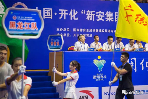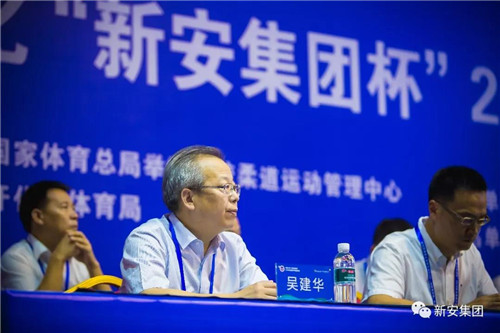 國家體育總局舉摔柔運動管理中心黨委書記畢東海,浙江省體育局局長鄭瑤,浙江體育職業(yè)技術(shù)學(xué)院院長、兩屆奧運冠軍占旭剛,衢州市委副書記、市長湯飛帆,市人大常委會副主任、開化縣委書記項瑞良等主要領(lǐng)導(dǎo)出席了開幕式。作為此次賽事的冠名單位,集團(tuán)董事長吳建華(右一)特邀參加了開幕式。