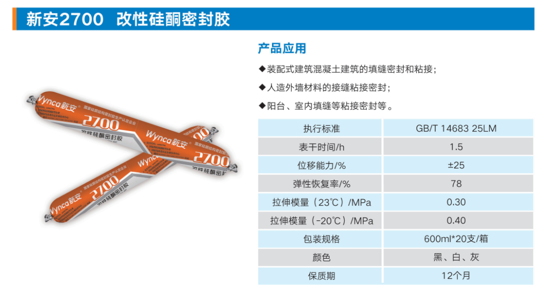作為綠色建筑行業(yè)的主要細分產(chǎn)業(yè)之一,近年來裝配式建筑市場規(guī)模保持著較快的增速,裝配式建筑膠市場也得到較快發(fā)展。新安2700改性硅酮密封膠因其良好的粘接、耐候、位移能力及可涂刷性等性能,獲得市場的青睞和認(rèn)可。