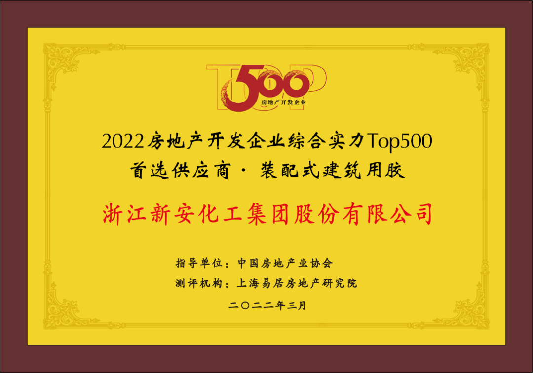 獲評“2022中國房地產(chǎn)開發(fā)企業(yè)綜合實力Top500首選供應(yīng)商-裝配式建筑用膠”